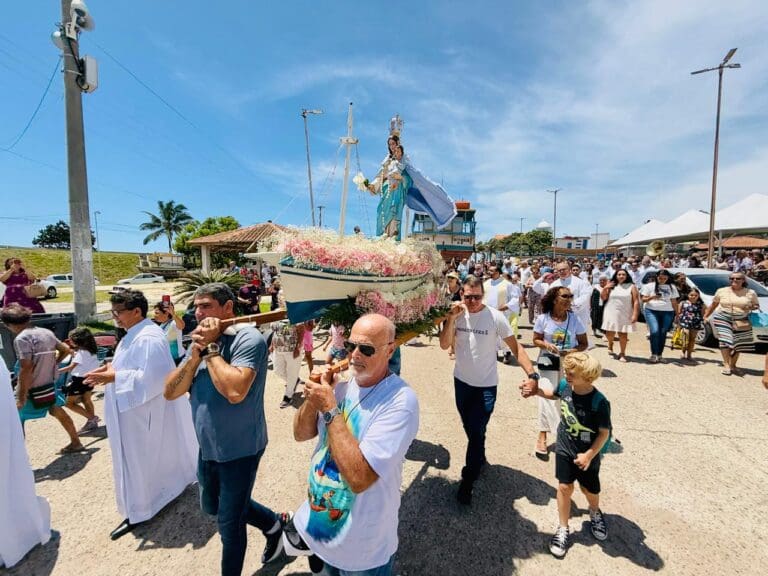 Com tradição de 136 anos, fiéis católicos realizam procissão fluvial de Nossa Senhora dos Navegantes, em Marataízes