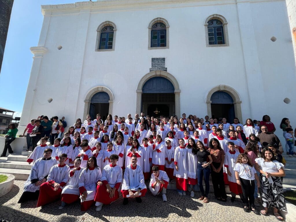 No último final de semana, os coroinhas da Paróquia Santíssimo Sacramento da Eucaristia, em Cachoeiro de Itapemirim, vivenciaram uma experiência marcante de fé, união e espiritualidade durante a Peregrinação à Igreja Matriz Nossa Senhora do Amparo, no município de Itapemirim, litoral sul. O momento especial aconteceu neste domingo, 18 de maio, reunindo dezenas de acólitos que, com devoção e alegria, participaram de uma programação preparada com carinho para fortalecer sua missão e vocação no serviço ao altar.