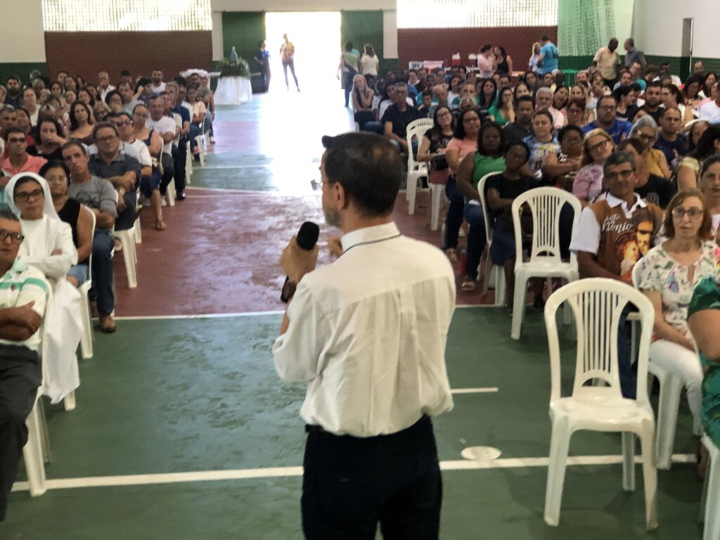 Centenas de fiéis se reúnem neste sábado, 25 de março, no ginásio do Instituto Federal do Espírito Santo (IFES) polo Rive, em Alegre, para o último repasse pastoral referente a este ano. O encontro é destinado aos regionais VI e VII.