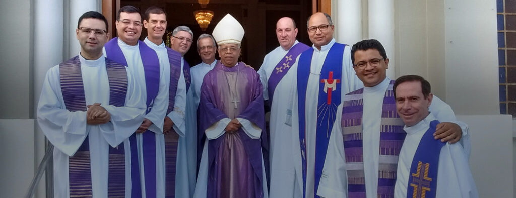 Hoje, às 9 horas, nosso Bispo Diocesano Dom Dario Campos presidiu a missa das cinzas, na Catedral de São Pedro. Juntamente com ele, estavam os Diáconos Reginaldo Gaspari, Pedro Noé e Miguel Jacomelli, além de alguns Presbíteros, sendo eles Padre Gracione Augusto Alves, Padre Junior Moreira, Padre Thiago Vargas, Padre Bruno Sá Rangel, Padre Américo Pinho e Padre Antônio Tatagiba Vimercat, Vigário Geral da Diocese de Cachoeiro de Itapemirim.
