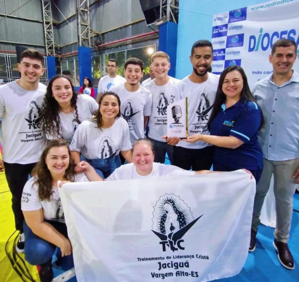 Em uma tarde marcada pela diversidade de ritmos e estilos, representantes da Rádio Diocesana FM 95,7, entregaram, nesse sábado, 30 de agosto, o prêmio de 1º lugar para o Ministério Filhos de Guadalupe. O grupo do TLC (Treinamento de Liderança Cristã) de Vargem Alta venceu após um desempate técnico o Festival de Música Diocesana – FEMUD 2025, com a composição “O Mundo ouvirá nossa voz”.