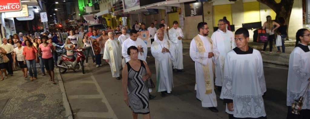 A missa da família é antecedida pela procissão que toma as ruas do Centro da cidade Cachoeiro. Saindo da Paróquia Nossa Senhora da Consolação, às 19h, Dom Dario, Sacerdotes, Diáconos, Seminaristas, leigos e a comunidade em geral partiram em direção à Paróquia São Pedro – Catedral.