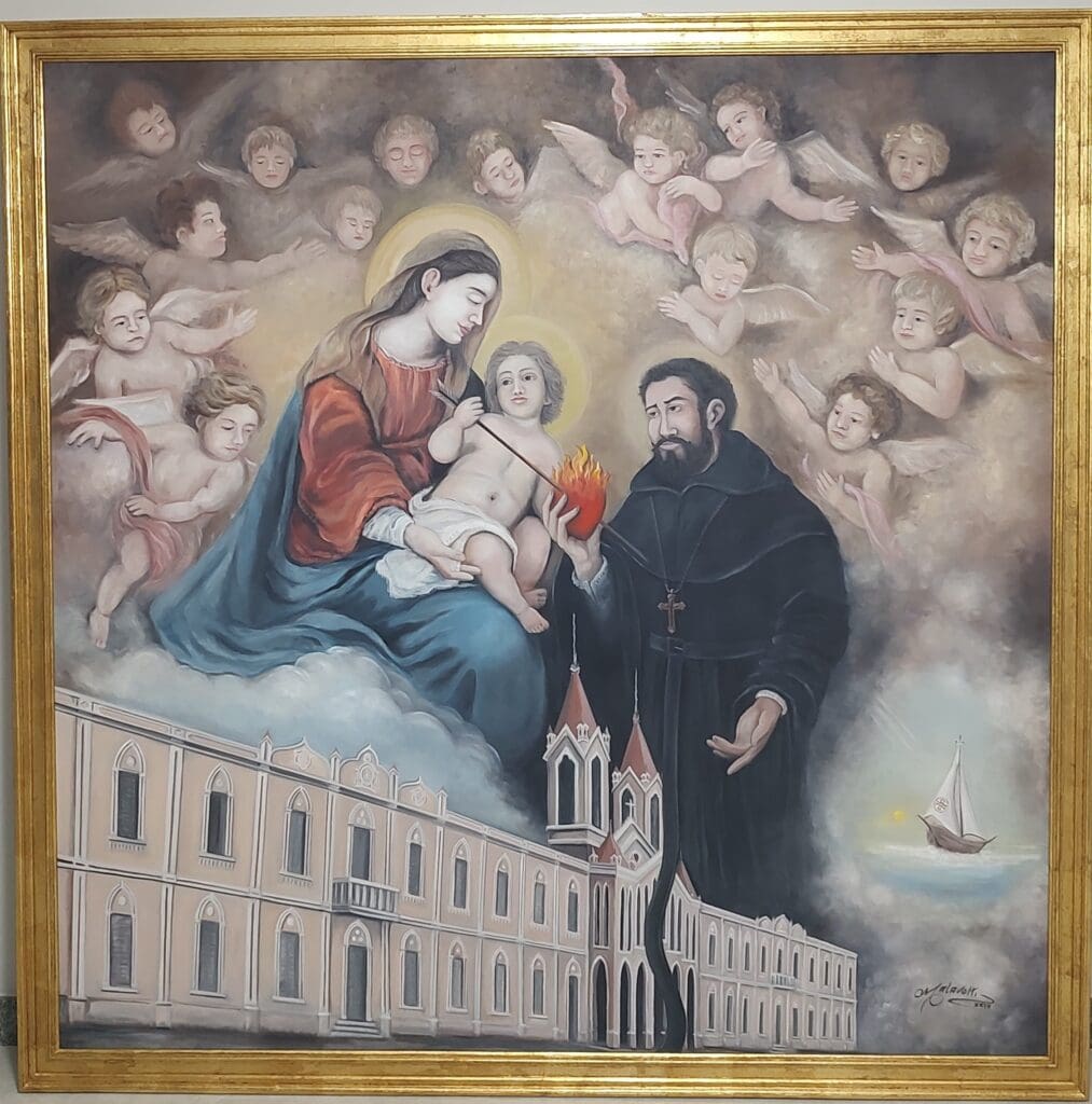 O imponente prédio, conhecido por todos como Capelinha, teve sua origem no início do século XX e abriga atualmente o Seminário Maior da Ordem dos Frades Agostinianos Recoletos, o Instituto Agostiniano de Filosofia e o Santuário de Nossa Senhora Aparecida. Foi construído em estilo neogótico e estava fechado desde 2018 quando as obras de reforma e restauro tiveram início. Seis anos depois, a igreja da Capelinha foi reaberta e o trabalho do artista castelense vai decorar a sacristia do templo.