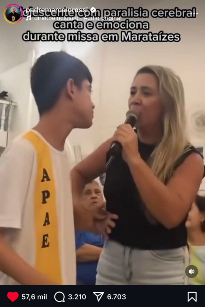 Publicado inicialmente no Instagram da Diocese de Cachoeiro, onde acumula quase 5 milhões de visualizações, o vídeo foi gravado em dia 12 de maio durante uma missa em comemoração ao Dia das Mães e também aos 23 anos da Associação de Pais e Amigos dos Excepcionais (Apae) de Marataízes, instituição que assiste o adolescente desde o seu primeiro ano de vida.