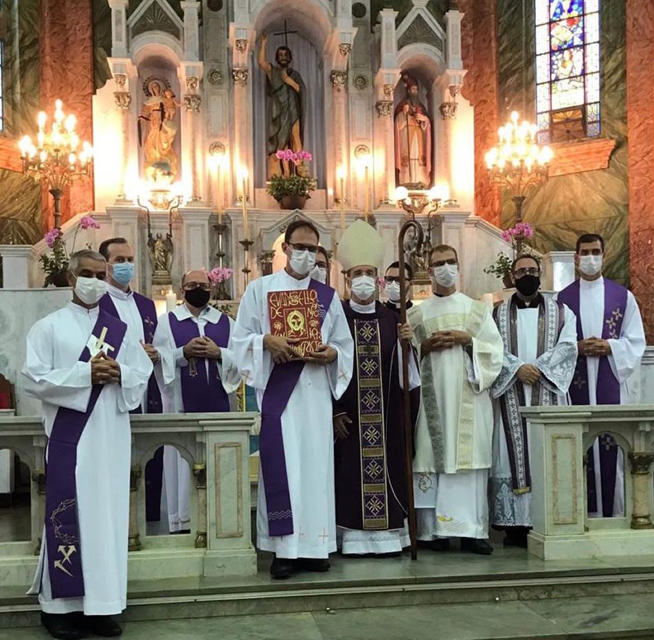 O novo diácono recebeu as bênçãos e o ministério da ordem pela imposição das mãos do arcebispo-bispo de nossa Diocese de Cachoeiro de Itapemirim, Dom Luiz Fernando Lisboa, que presidiu a santa missa.