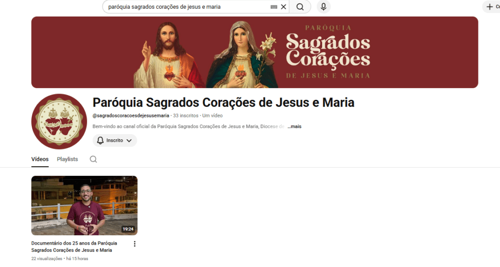 Canal no YouTube: Paróquia Sagrados Corações de Jesus e Maria