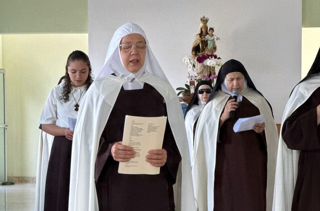 No último domingo, dia 16 de novembro, o Carmelo São José, localizado em Soturno, Cachoeiro de Itapemirim, viveu um momento de grande emoção e espiritualidade com a celebração dos primeiros votos de pobreza, castidade e obediência da Irmã Maria Teresinha da Divina Misericórdia. A cerimônia, realizada na capela do Carmelo, foi presidida pelo padre Juliano Ribeiro Andrade e reuniu religiosas, familiares, amigos e fiéis devotos da espiritualidade carmelitana.