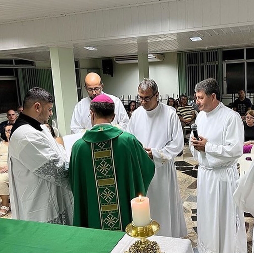 Quatro candidatos ao diaconato permanente, alunos da Escola Diaconal Santo Estevão, deram mais um passo nesta quinta-feira, dia 13 de outubro, rumo à ordenação diaconal. Os candidatos foram instituídos nos ministérios do Leitorato e do Acolitato durante a Santa Missa presidida pelo bispo diocesano, Dom Luiz Fernando Lisboa, na Sede da Escola Diaconal, em Cachoeiro de Itapemirim. As instituições são parte do processo formativo do candidato ao diaconato permanente que, depois de alguns anos de formação, segue dando passos significativos ao futuro exercício do ministério diaconal.